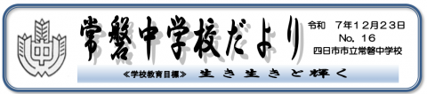 冬休みは、クリスマスやお正月など様々なイベントや行事もあり危険や誘惑がいっぱいです。中学生として、規則正しい生活を心がけ充実した冬休みを過ごしましょう。