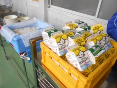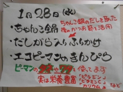 本日の学校給食週間メニューは、米飯、牛乳、だしがら入りふりかけ、ちゃんこ鍋、エコピーマンのきんぴらです。