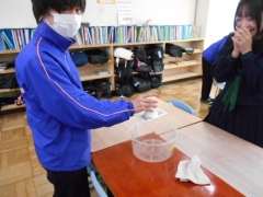 今日の理科の授業では、圧力(水圧、気圧)の復習をしました。