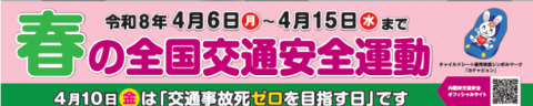 明日、4/6(月)より「春の全国交通安全運動」が始まります。