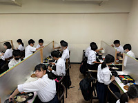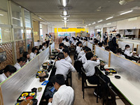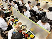串本海中公園のレストランにて、全員集合。検温も済ませ、昼食です。