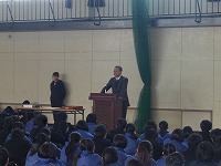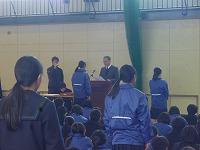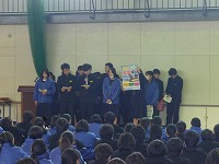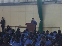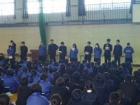 本日、6限目、前回延期になった生徒集会が行われました。表彰伝達につづき、校長先生からのお話、生徒会長のあいさつ、各委員会からの報告がありました。