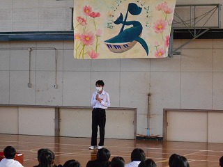 文化祭がはじまりました。まずは1年生からです。初めての文化祭で、少し緊張している様子でした。初めに学年合唱を歌いました。そのあと、クラス合唱を行いました。どのクラスも学年リハーサルの時よりも良い合唱になっていました。
