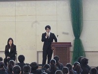 離任式では、去られる先生お一人おひとりから生徒全員に向けてのお話がありました。
