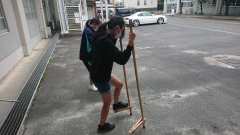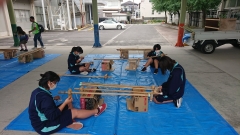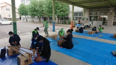 10月9日に常磐地区社会福祉協議会が主催する竹馬整備のボランティアが行われ、本校生徒も福祉委員を中心として13名参加しました。整備された竹馬は常磐小学校の児童が授業で使用することになっています。安全に乗れるように紐を結びなおしたり、竹が割れていないか確認しました。
