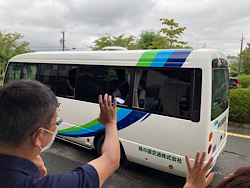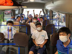 会津若松市で行われる全国大会へテニス部男子が元気に出発しました。