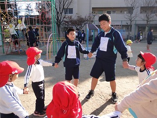 「お兄ちゃんも入れて~」とかごめかごめに仲間入り♪