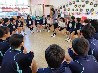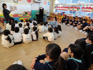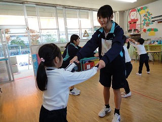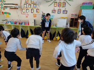 昼食前の触れ合いタイム。歌に合わせて踊ります。