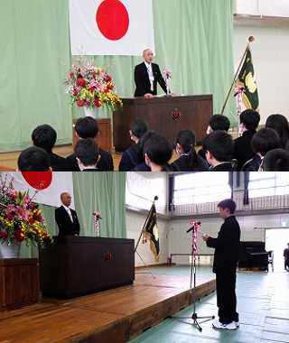 校長先生から校章の常磐木の意味を交えて式辞が新入生に送られました。