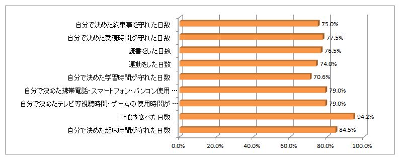 自分の決めた読書、運動や学習時間が守れるよう、アンケートをもとに自分の生活を振り返ってみましょう。