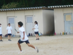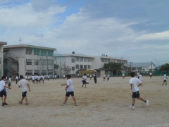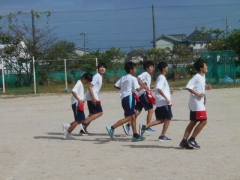 この時間は、小集団種目(大縄跳び)、生徒会種目(しっぽとり)、選抜リレーの練習をしました。