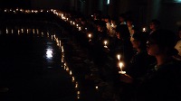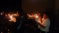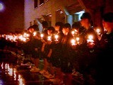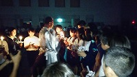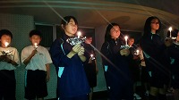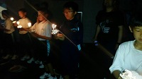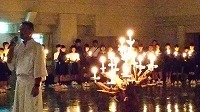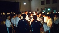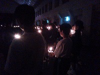最初は火の神の一つしかなかった火が、クラス全員のろうそくに火が灯り、徐々に明るくなっていく様子が幻想的な雰囲気をかもし出していました。