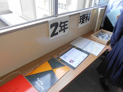 美術部・文芸部・家庭部・理科部・パソコン部の作品を見学しました。