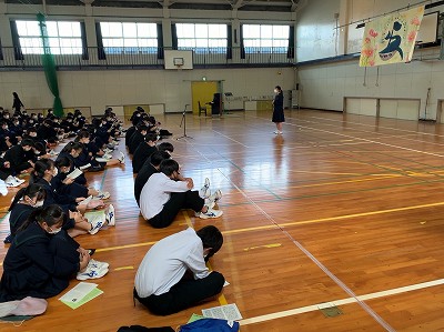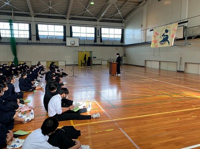 また、3年生の合唱コンクールの後に音楽部の発表と3年生のスピーチがありました。