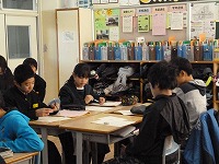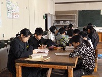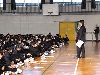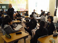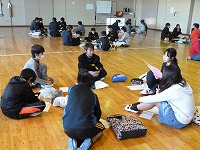 その後、武道場、体育館、技術室、視聴覚室、1年1組から7組までの教室に分かれグループでの討議を行いました。中学生がグループの中で司会をして進められましたが、活発に意見を交わすグループもあり、司会が苦労するグループもあったりしましたが、予定の時間はあっという間に過ぎていきました。