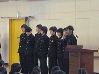 この右下写真は25日(金)の学校での壮行会の様子です。