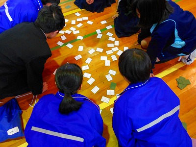 6限目に1年生全員で、百人一首大会を行いました。