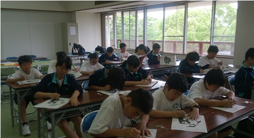 自然教室も三日目ですが、5組の生徒も疲れをみせず集中して伊勢型紙を作っています。