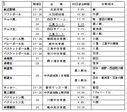 先日10月20日に掲載しました常中だよりNO14の記事の中に中体連新人大会の各種目の会場と開始時間・対戦相手の表がありましたが、その中に誤りがありましたので、訂正して、お詫び申し上げます。生徒たちへの皆様方の声援をよろしくお願いいたします。