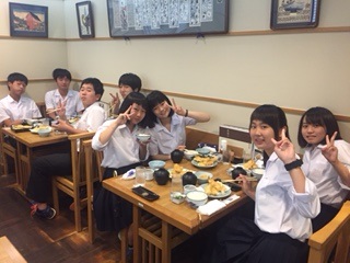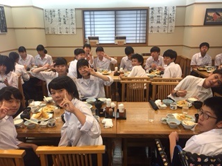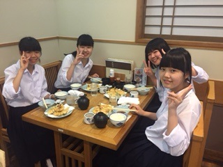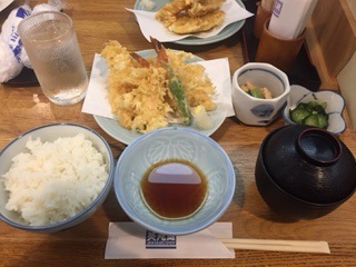 タワーコース 浅草 葵丸進で昼食です。立派な揚げたて天ぷらをいただいています。ご飯は、おかわり自由だそうですよ!