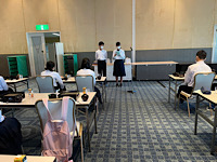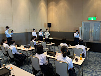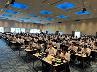朝食会場に集まり、参加者全員の健康を確認しました。朝の集いでは実行委員会から昨日の反省としてメリハリをつけようという話がありました。反省を活かして、今日も出発です。