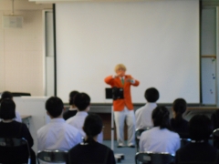 「いじめ助けてくれる人いる~学生時代の経験から伝えたいこと~」というテーマで、生活を振り返り、自分も周りの人も大切であり、家族の大切さを改めて感じる機会となりました。講演会では 「いじめ防止活動」を行っている田中さん自身、中学時代から約10年間いじめにあい、芸人になってからも先輩からいじめを受けていたという実体験なども含め、夢を持つ大切さやいじりといじめの違いなどをわかりやすく講演していただいた。