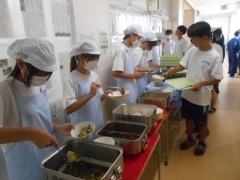 また、10月の給食目標は「地産地消について考えましょう」です。地産地消とは、地元で採れたものを地元で消費することです。日本では、地形や気候によって、それぞれの地域に合った米や野菜、果物、肉や魚介類などが生産されています。どの地域でどんなものが多く生産されているのか調べてみましょう。