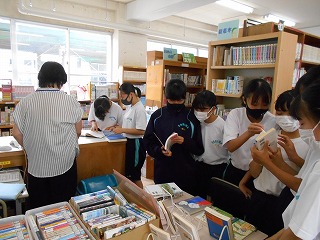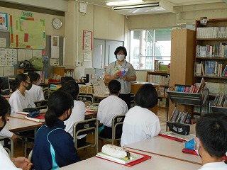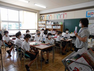今日と明日に1年生では国語の時間に司書さんによるブックトークを行っています。
