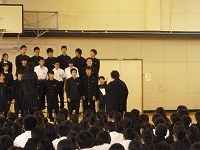 本日、5・6限目に馬場先生に3年生合唱練習の指導をしていただき、1・2年生はその様子を見学しました。馬場先生による指導も3回目となり、今回が最後の指導です。3年生はどのクラスもしっかり仕上がってきました。そのためか、今日の指導は細かな部分の指導が中心でした。11月6日(金)は、いよいよ文化祭です。残り少ない練習時間を大切に、今日、馬場先生から教えていただいた注意点を改善して、本番に臨んでほしいと思います。