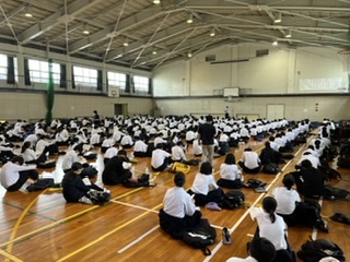 行程表の最終確認や隊形の確認、健康観察やホテルでの過ごし方などの確認をおこないました。今回の修学旅行は安全性の確保を最優先とし、活動に臨んでほしいと思います。