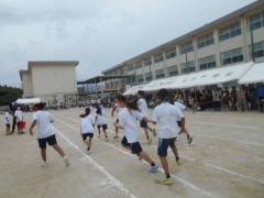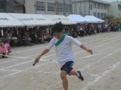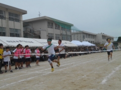 【学級対抗リレー】各学級の選抜選手8人でバトンをつなぎます。