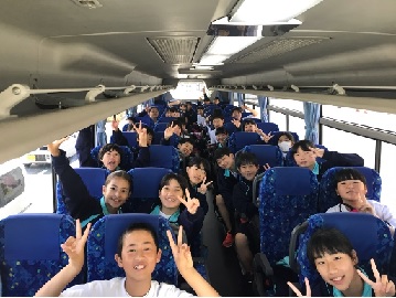 朝から体育館で出発式を行い、バスに乗車し、元気に出発しました。