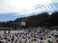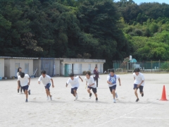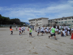 今日は整列隊形からのラジオ体操、全員リレーの招集から入場、学年待機場所の確認、学年種目の練習などを行いました。