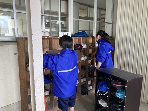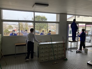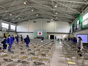 1,2年生で、3月7日に行われる卒業式の準備をしています。少しでも気持ちよく式が実施できるようにみんなで頑張って準備・清掃をしています。