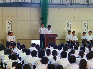 全校生徒の前でしっかりと生徒会役員への抱負を話してくれました。