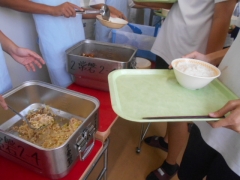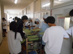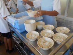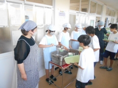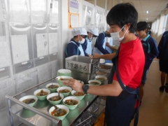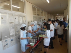 本日の給食の様子です。栄養教諭の先生から色々なアドバイスをいただきました。