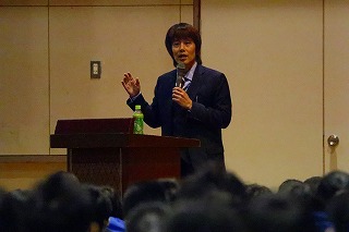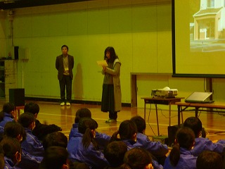 子ども達に伝えたいとおっしゃる石賀先生が、中学生に聞かせるのは今回がはじめてとのことでした。生徒も保護者も先生の話に聞きいっていました。