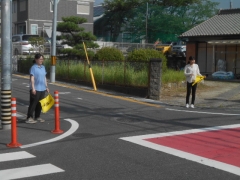 本日、職員による朝の交通安全指導を行いました。定期的に通学路の危険個所を中心に指導を行っています。