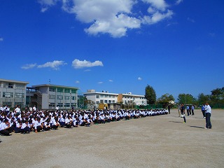 目標の5分以内にはほとんどのクラスが整列点呼ができていました。