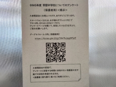 各教室前にQRコードを掲示して学校アンケートを実施しておりますので、回答にご協力お願いいたします。