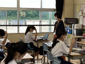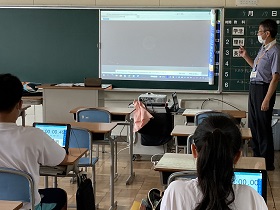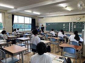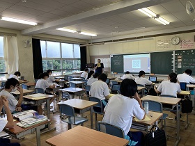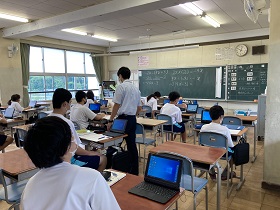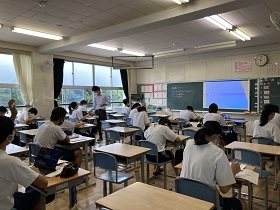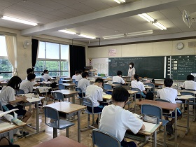 昨日に引き続き各教室で放送による始業式を行い、1限目に感染症対策に関する学活を行いました。2,3限には授業を行い、教師も生徒も久しぶりの対面による授業を楽しんでいる様子が見られました。