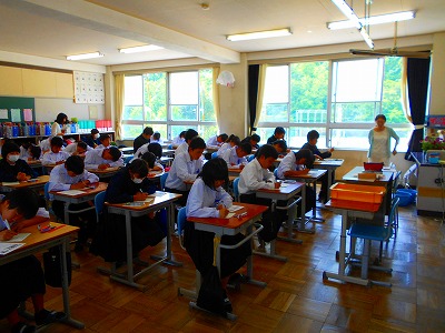 国語・数学(3年は英語・数学)の学力検査を行いました。
