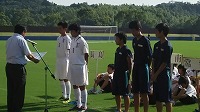 落ち着いて、自分たちのサッカーをしようと声をかけて、後半へ。中盤からボールを奪い、倉田山ゴールへ向かいますが、相手DFの厳しいプレスでなかなかゴールをわることができませんでした。常磐中ペースだったのですが、結局そのまま得点がとれずにゲーム終了。