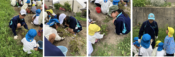 常磐中央幼稚園です。昨日は、園児と一緒に畑でジャガイモの収穫をしました。