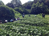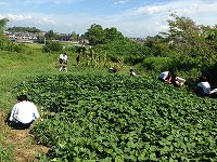 そんな中、1年生で農園作業を行いました。先日刈った雑草がまた伸びています。鎌で雑草を取り除きました。サツマイモの葉も畝が見えないほど茂っています。順調です!