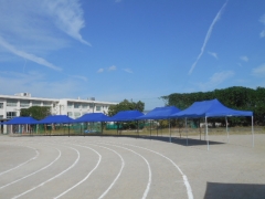 8:50~開会式・ラジオ体操 9:00頃~生徒会種目・大縄跳び・学級対抗リレー10:00頃~1年学年種目・2年学年種目・3年学年種目11:10頃~1年全員リレー・2年全員リレー・3年全員リレー12:20頃~閉会式・給食今年度も校舎前と視聴覚室に保護者観覧席を設置しました。ぜひ、ご参観いただきますようよろしくお願いいたします。駐車場が少ないため、自家用車での来校はお控えください。自転車で来校される方は、池の前の駐輪場をご利用ください。
