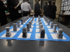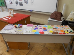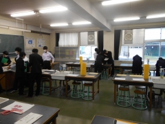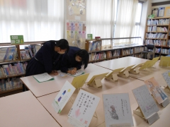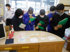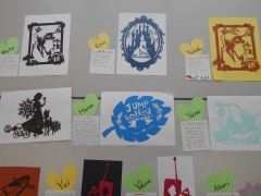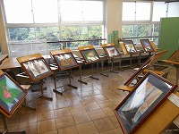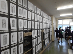 1.2.3年生の美術作品、社会科の新聞スクラップ・郷土研究、理科の自由研究、1年生の伊勢型紙、2年生の職場体験個人新聞、3年生のドリームマップの教科展示。