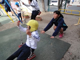 地域の方との交流会の前に、少しだけ外遊びします。