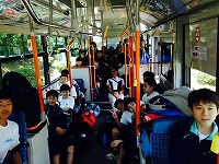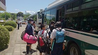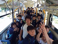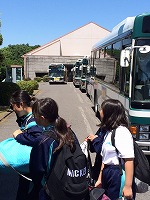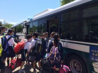 退所式を終え、バスに乗り込み学校へ向かいます。