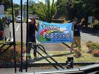 鈴鹿青少年センターの職員の方が、「ありがとぉ また来てなぁ」と書かれた横断幕を手に見送ってくださいました。